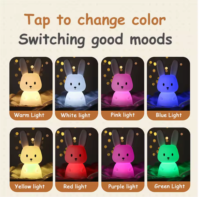 Bring comfort and charm to bedtime with this adorable rabbit-shaped night light. Soft silicone, gentle glow, and dimmable settings make it the perfect companion for children’s bedrooms, nurseries, or anyone who loves cute décor.