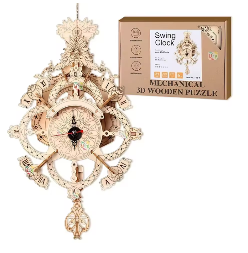 Bring craftsmanship and vintage elegance into your home with the URY 3D Wooden Retro Wall Clock Puzzle. Designed with intricate details and a luxurious pendulum style, this DIY kit lets you build a fully functional wall clock that’s as rewarding to assemble as it is to display. Perfect for hobbyists, puzzle fans, and anyone who loves creative décor.