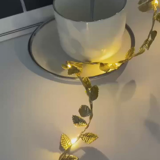 50LED Golden Leaf Fairy Light String – Battery Powered Home & Wedding Décor